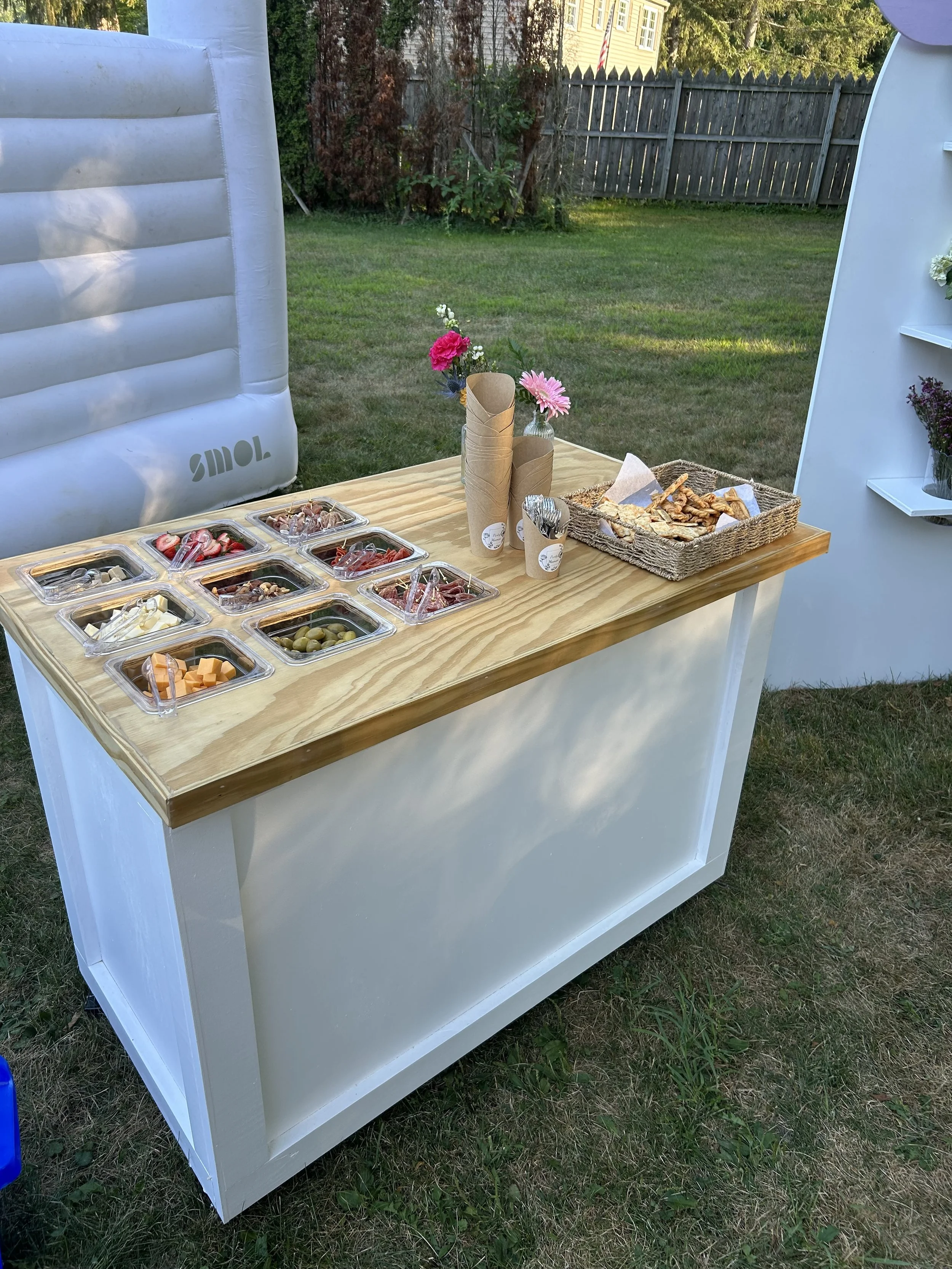 Bring the flavor and the fun to your next event with our All-in-One Mobile Food Cart, the perfect addition to weddings, birthdays, corporate gatherings, or any celebration! This stylish and functional cart is designed to hold any kind of food you can imagine, from savory appetizers and hot entrees to sweet desserts and snacks. Whether you're serving charcuterie, cupcakes, tacos, mini sliders, popcorn, or donuts, our cart adapts beautifully to your vision.